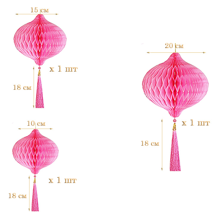 НАБОР бумажное украшение Шары-соты с кисточкой, розовый - 3шт: