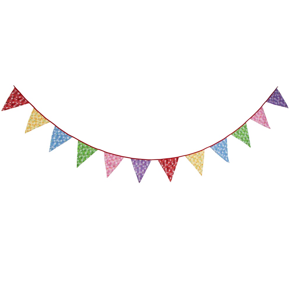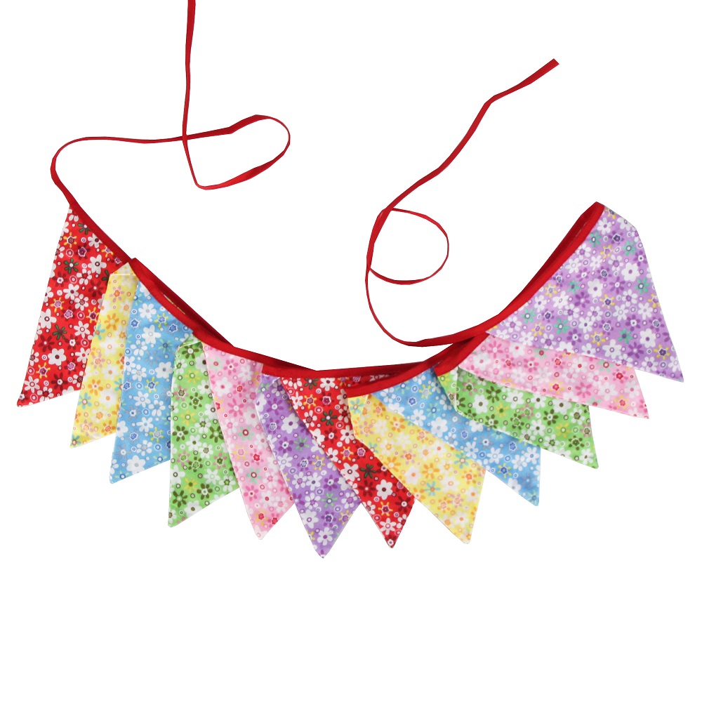 Гирлянда состоит из 12 флажков. Расстояние между флажками - 6 см, общая длина составляет 4 м.
