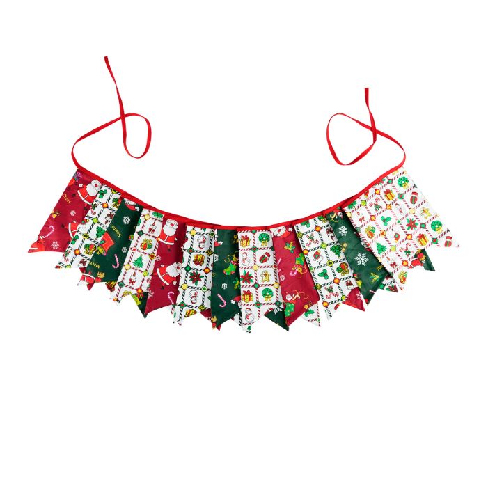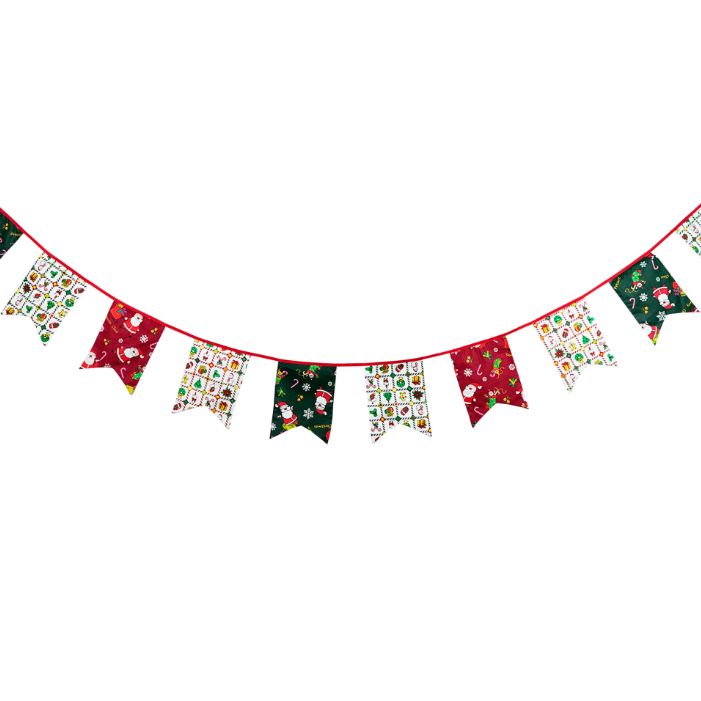 Гирлянда состоит из 12 флажков, общая длина составляет 3,4 м, расстояние между флажками 3 см, длина матерчатых флажков 2,1 м, длина лямок с обеих сторон по 50 см