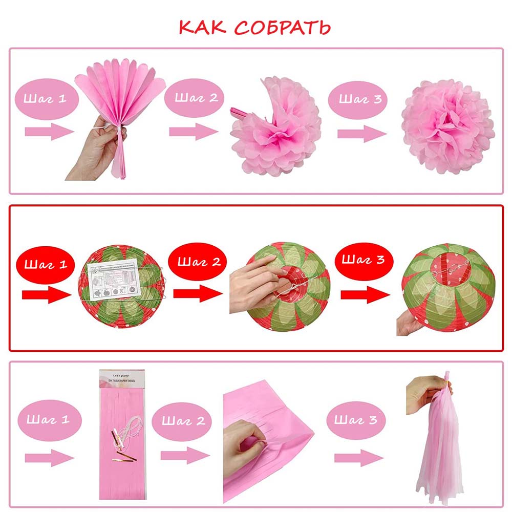 Набор из бумажных украшений, можно применять в качестве декорирования фотозоны к празднику, и праздничного стола. Можно использовать несколько раз.