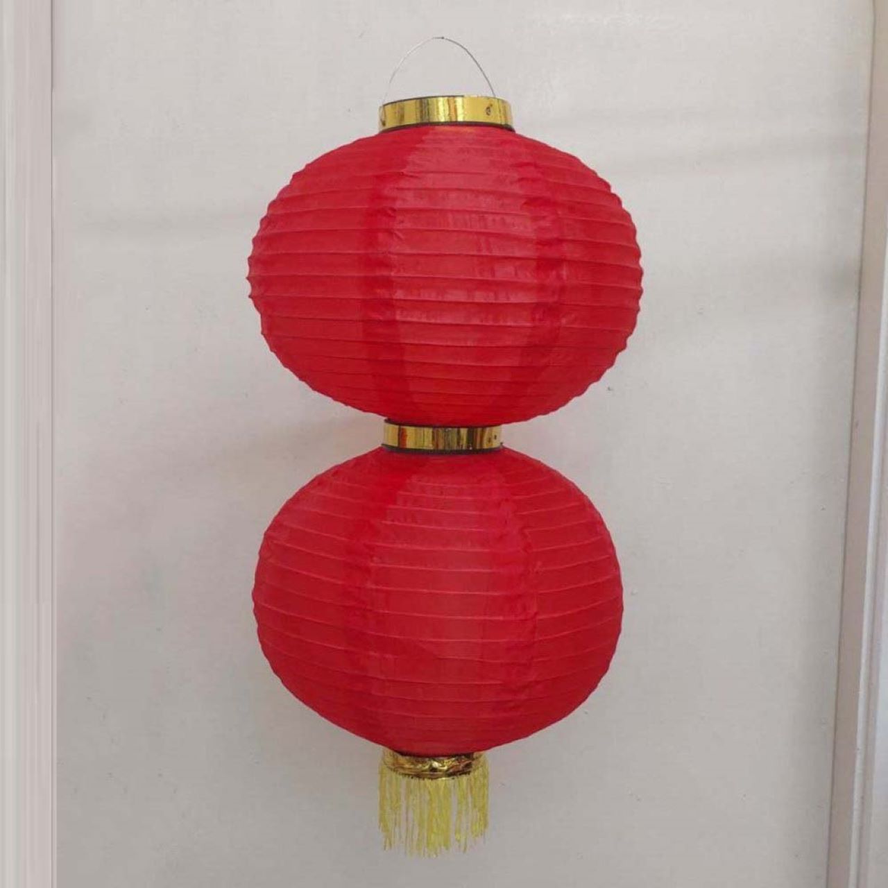 Круглый китайский фонарь состоит из двух ярусов диаметром 35 см каждый.