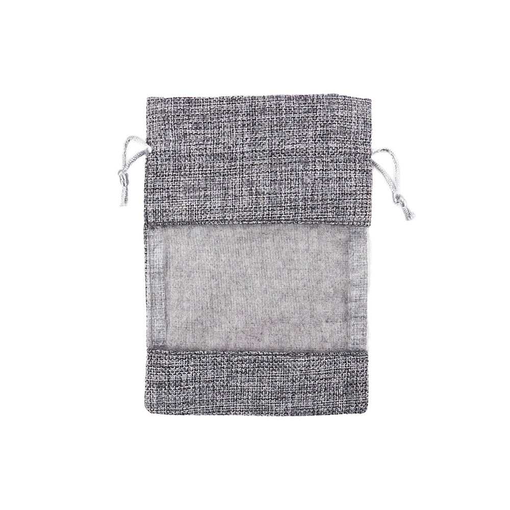 Мешочек из мешковины и органзы 13х18 см серый