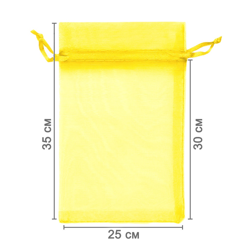 Мешочек из органзы 25 х 35 см — практичный аксессуар для упаковки крупных предметов и подарков. Лёгкая ткань подчёркивает содержимое и придаёт праздничный вид.