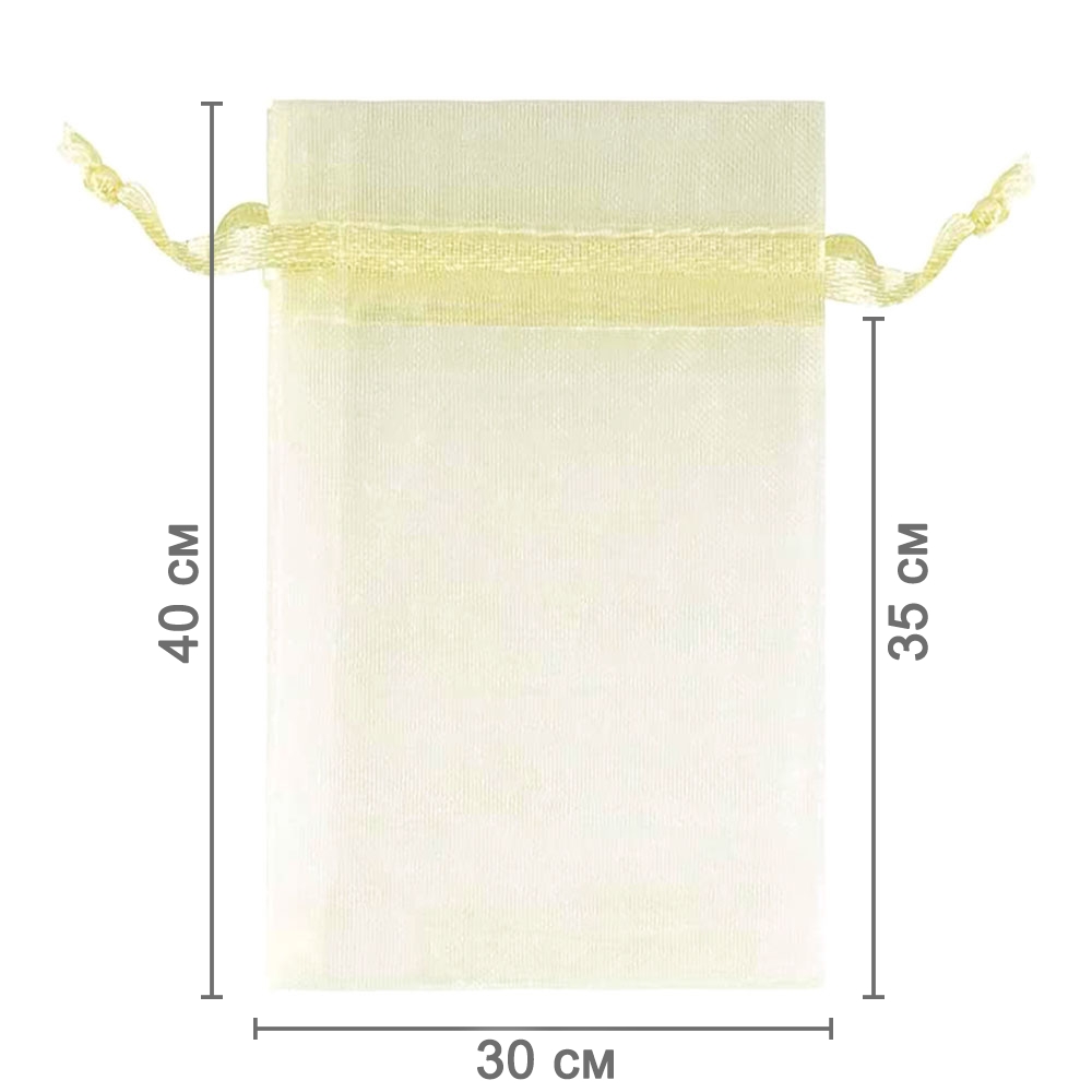 Мешочек из органзы 30 х 40 см — практичный аксессуар для упаковки крупных подарков и хранения предметов. Полупрозрачная ткань подчёркивает содержимое и придаёт праздничный вид.