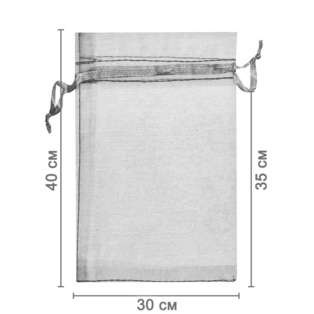 Мешочек из органзы 30 х 40 см — практичный аксессуар для упаковки крупных подарков и хранения предметов. Полупрозрачная ткань подчёркивает содержимое и придаёт праздничный вид.
