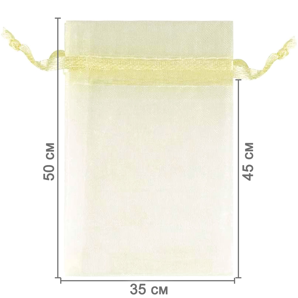 Мешочек из органзы 35 х 50 см — стильная и удобная упаковка для крупных подарков и хранения больших предметов. Лёгкая ткань подчёркивает содержимое и создаёт праздничный вид.