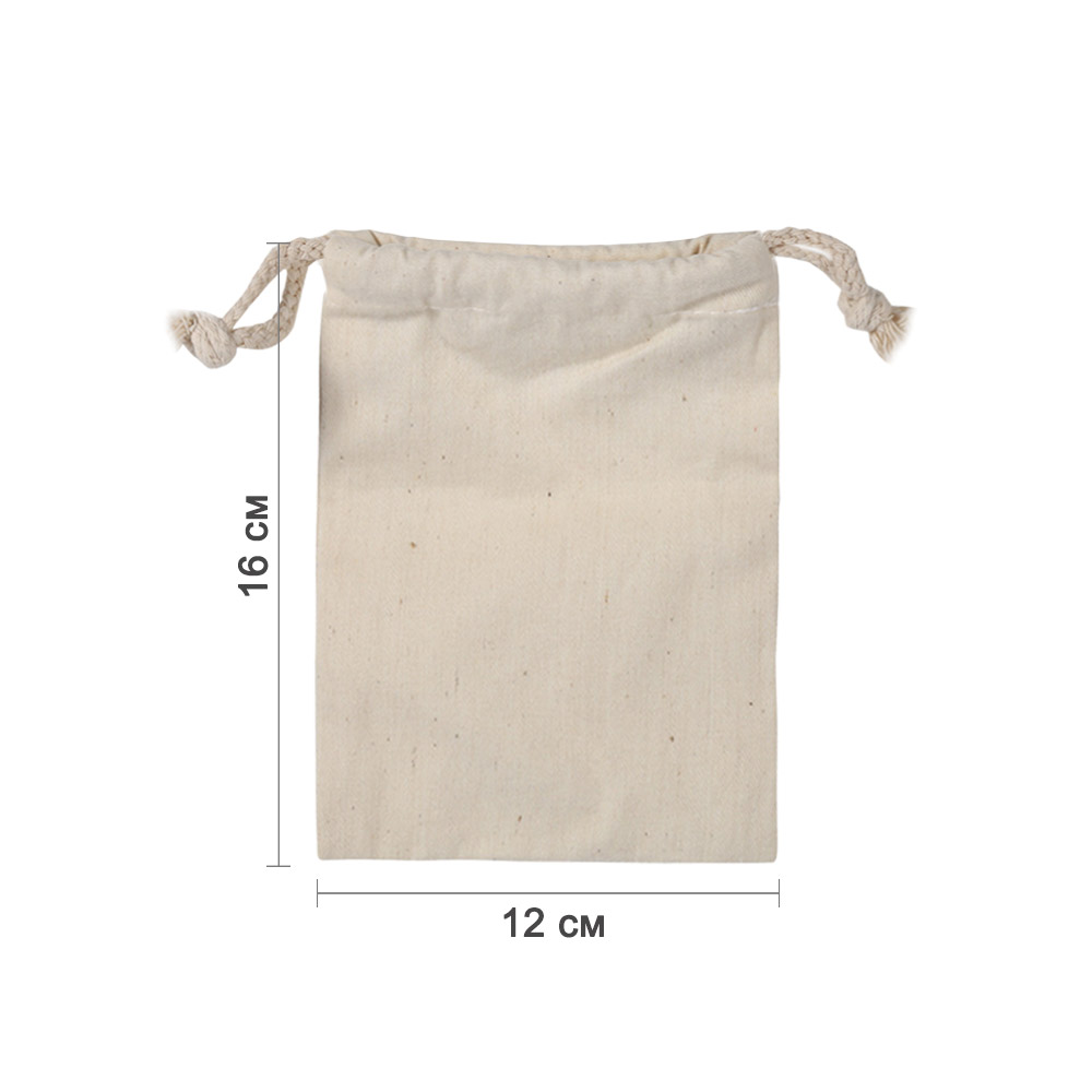 Мешочек из хлопка 12×16 см — универсальная упаковка для подарков, хранения и творчества. Натуральный хлопковый материал приятен на ощупь и подходит для украшений, сувениров, косметики, сладостей и других мелочей. Лаконичный дизайн делает мешочек удобным решением как для подарочной упаковки, так и для повседневного использования.