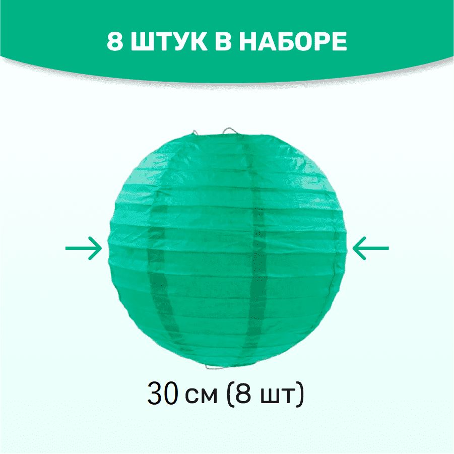 В комплект входит 8 бумажных фонариков и лента атласная.