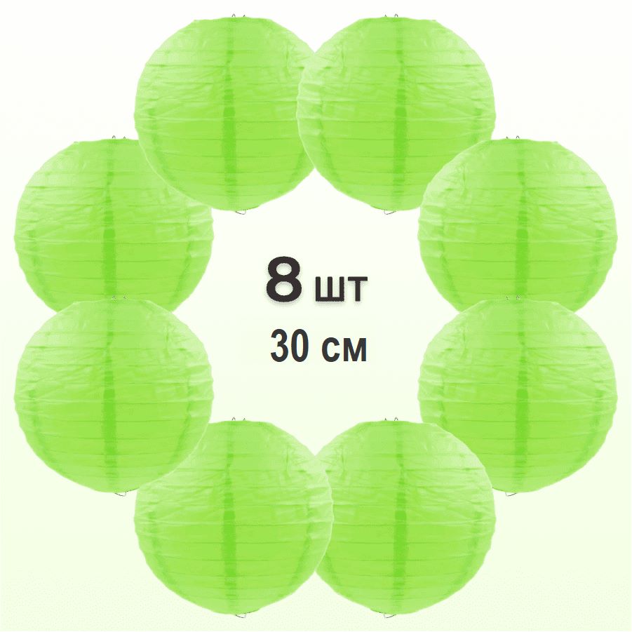 Комплект подвесные фонарики 30 см х 8 шт, салатовый