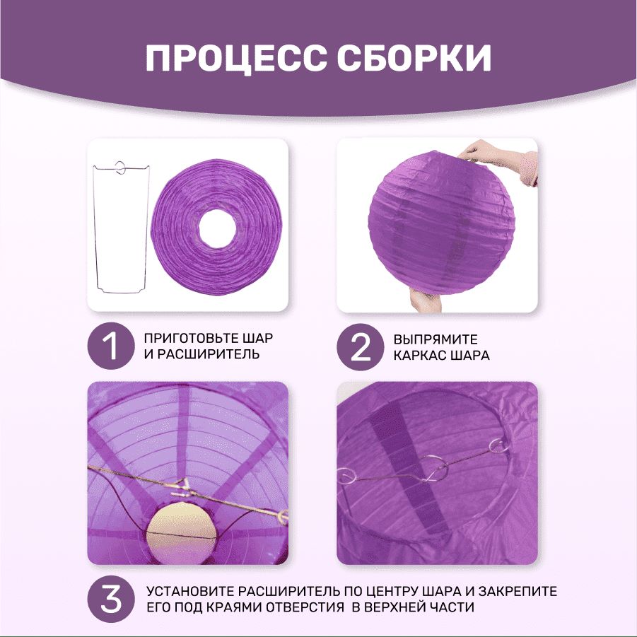 В комплект входит 8 бумажных фонариков и лента атласная.