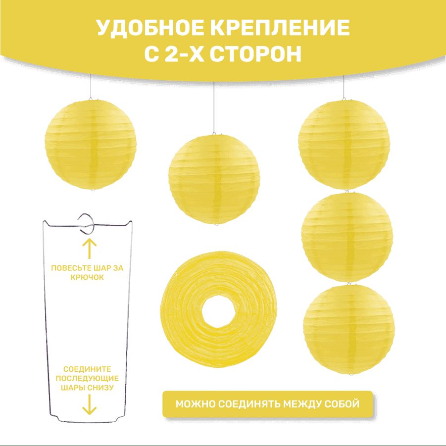 В комплект входит 8 бумажных фонариков и лента атласная.