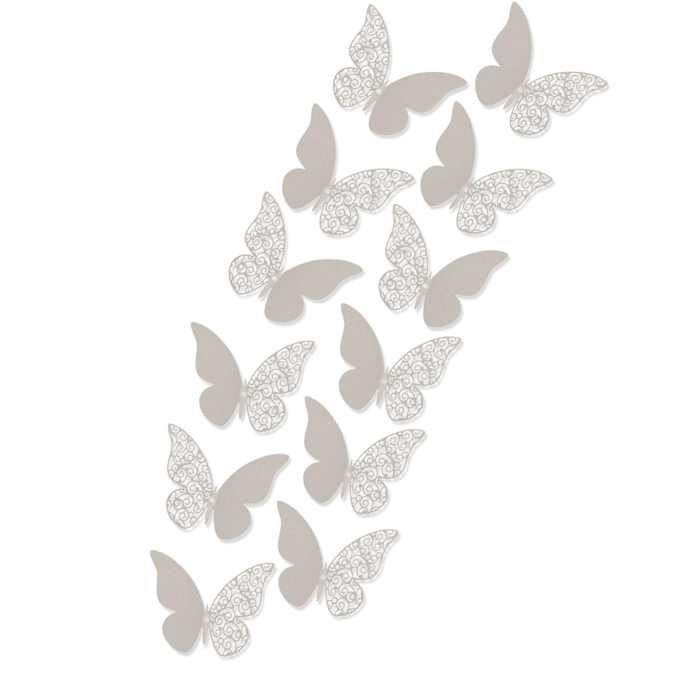 Бабочка из перламутровой бумаги, перфорация исполнена лазерной резкой, крепятся с помощью силиконовой липучки.