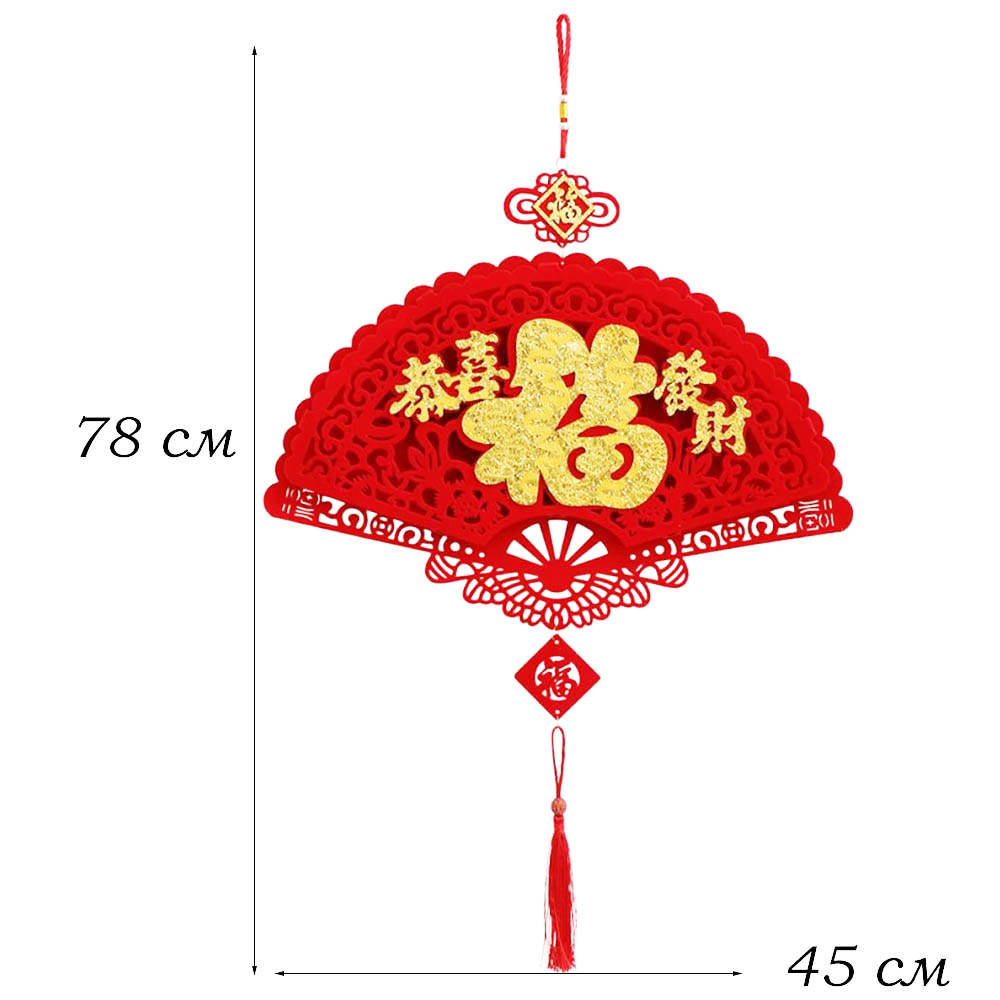 Китайская подвеска фетр веер 45х78см, Богатство