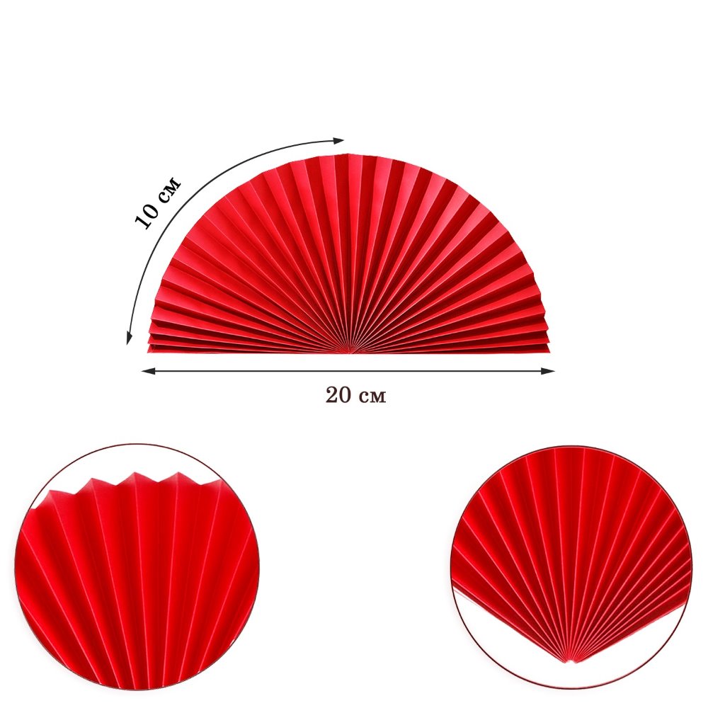 Веер-гармошка 160г/м 20 см, красный